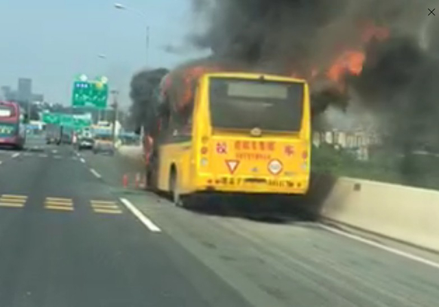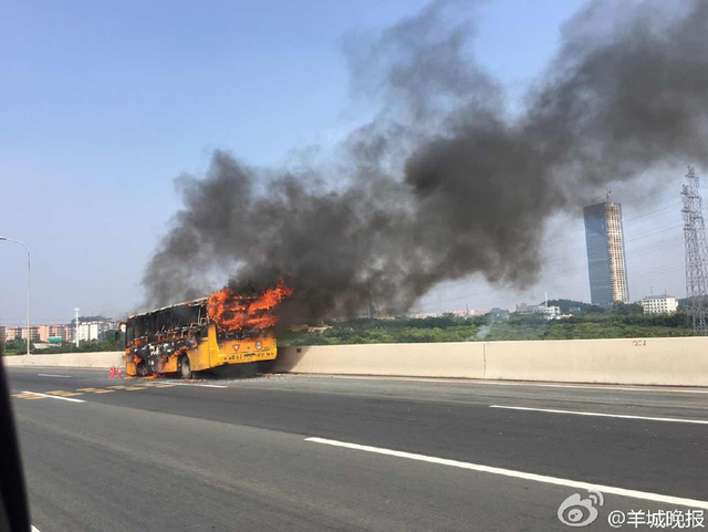 1/5 据羊城晚报官方微博报道,9月27日,广州市南沙港快速南往北方向,距仑头收费站约200米处,一辆校巴起火,火势凶猛,浓烟滚滚。