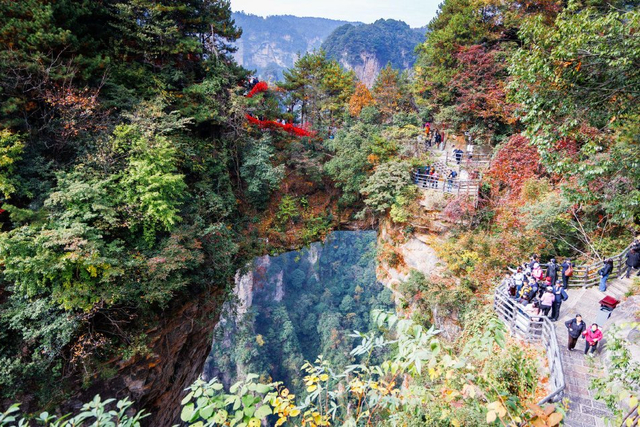 7/10 2024年11月9日,湖南张家界,立冬时节,张家界景区山峰高耸嶙峋,绚丽植被点缀山岩。