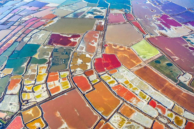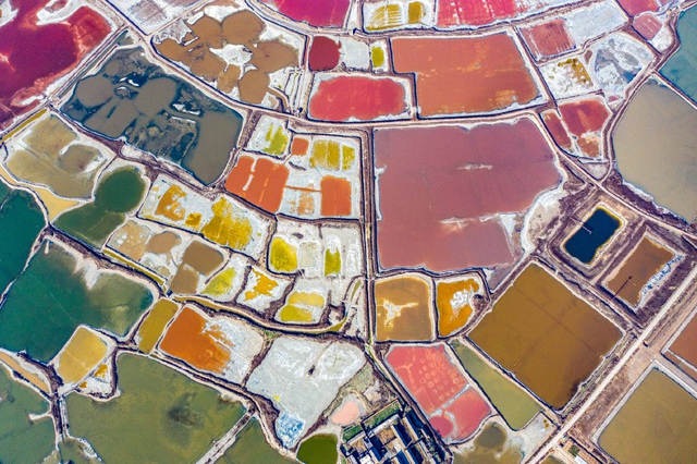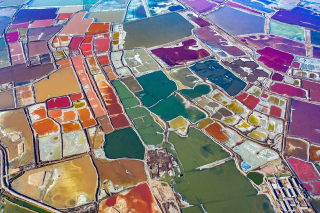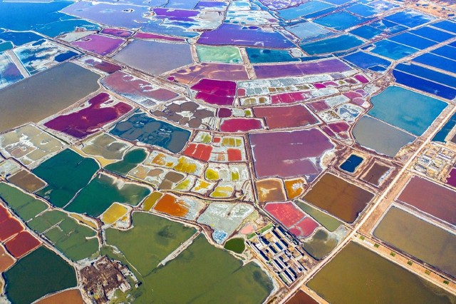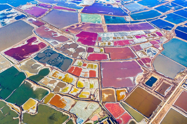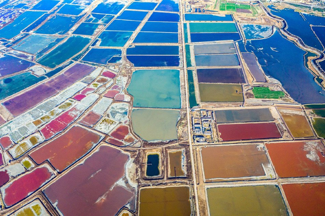 山西运城:冬日盐湖色彩斑斓 宛如“美拉德”调色盘