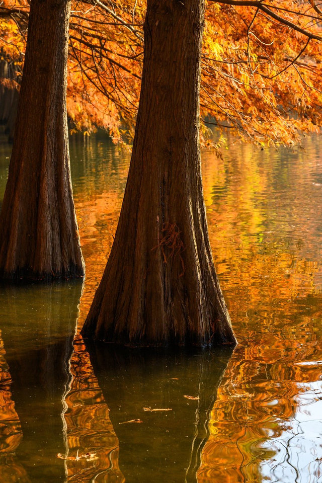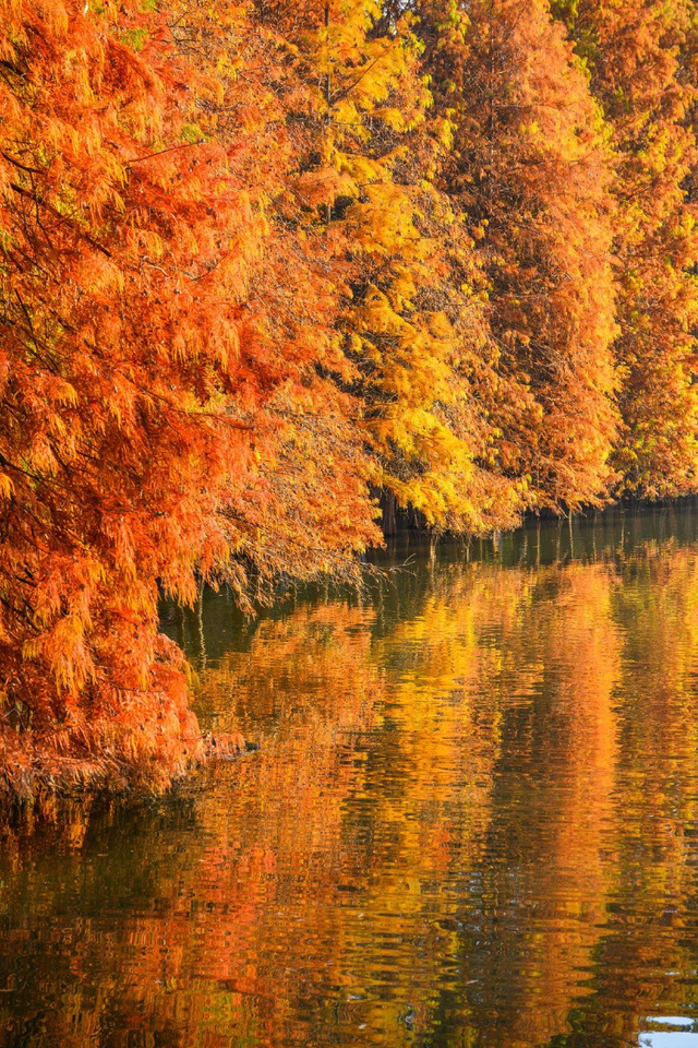 10/20 2024年11月30日,南京,明孝陵落羽杉换上了金黄与橙红交织的新衣,在阳光下色彩斑斓,在水面倒映下仿佛一幅油画。