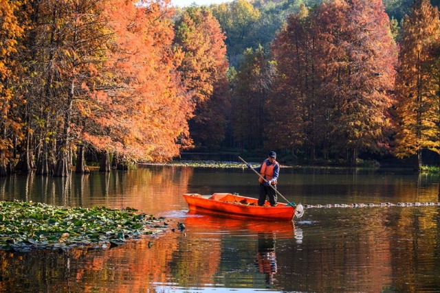 5/20 2024年11月30日,南京,明孝陵落羽杉换上了金黄与橙红交织的新衣,在阳光下色彩斑斓,在水面倒映下仿佛一幅油画。