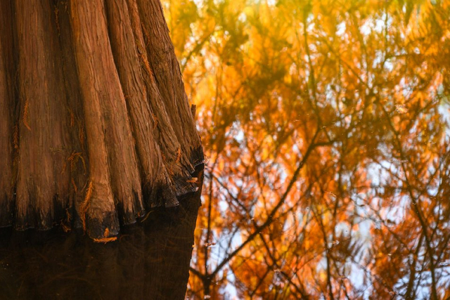 4/20 2024年11月30日,南京,明孝陵落羽杉换上了金黄与橙红交织的新衣,在阳光下色彩斑斓,在水面倒映下仿佛一幅油画。