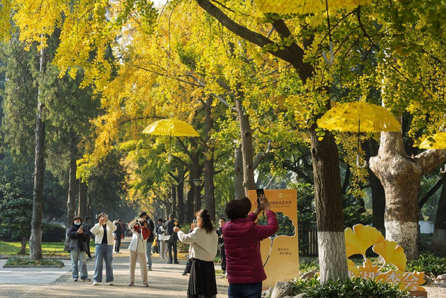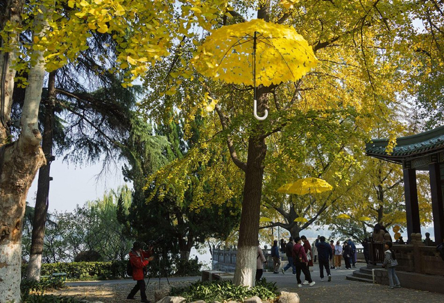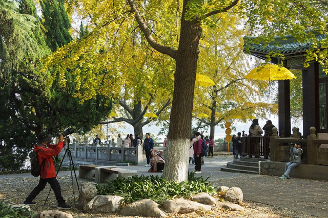 玄武湖公园银杏满目金黄
