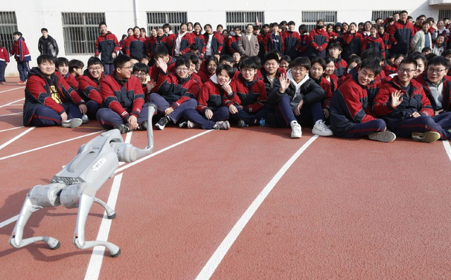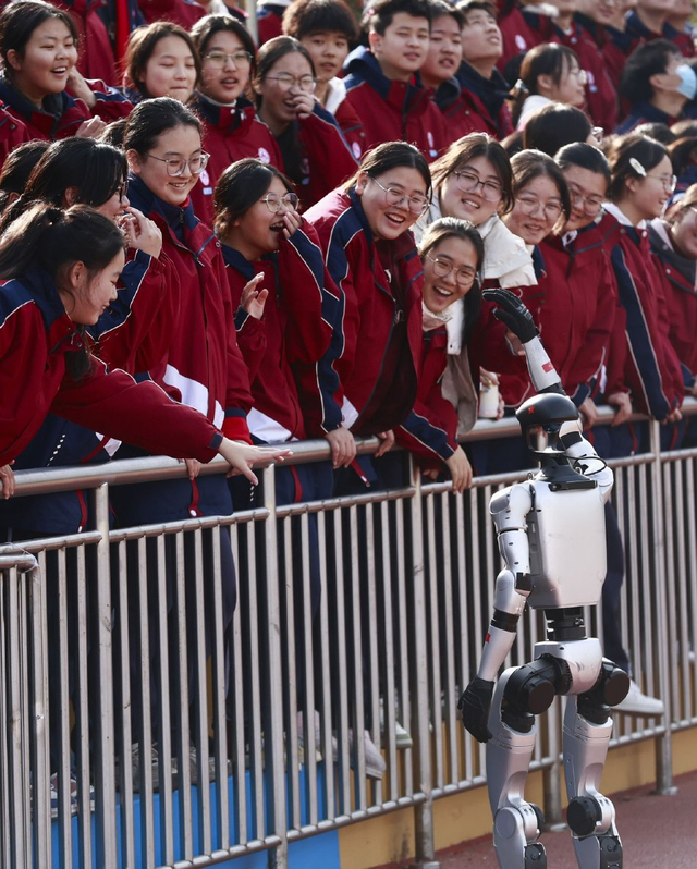 江苏淮安:中学生参加校园科技节 与人形机器人互动