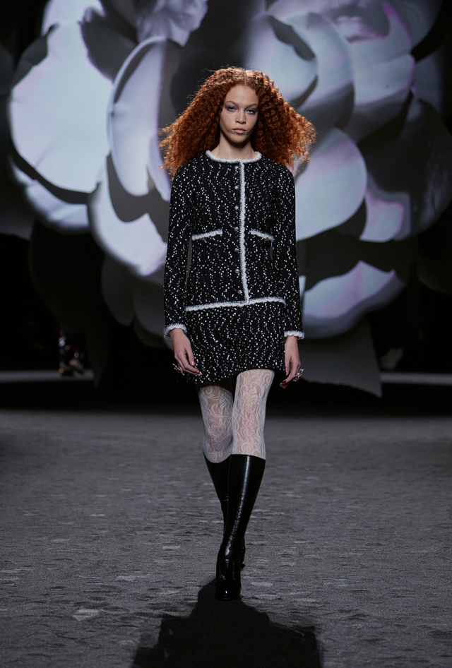 36/66 山茶花是CHANEL品牌的符号,维吉妮·维娅这样说道:“它令我感到安心又亲切,我钟爱它的柔软与力量。”CHANEL 2023秋冬高级成衣系列以这朵冬日之花为主题,它化作精巧点缀,或是浪漫主义气息的印花,绽放于口袋、外套、钮扣之上,配饰方面也无处不在回应山茶花元素,包袋、珠宝、发饰呈现立体花朵的形态,精致、灵动。