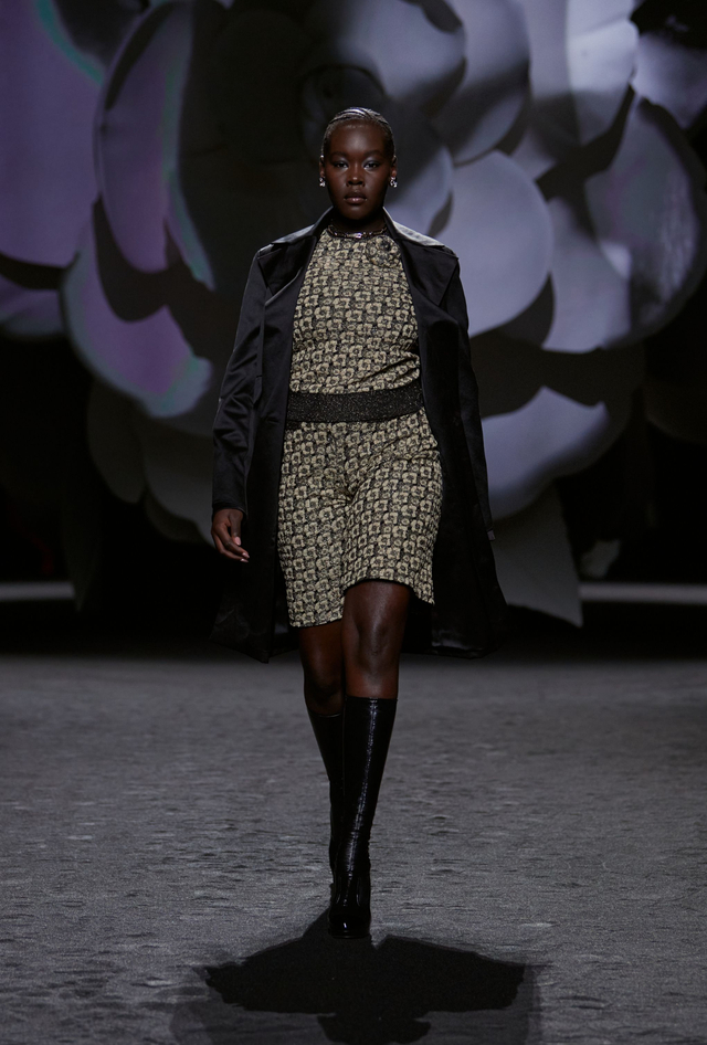 38/66 山茶花是CHANEL品牌的符号,维吉妮·维娅这样说道:“它令我感到安心又亲切,我钟爱它的柔软与力量。”CHANEL 2023秋冬高级成衣系列以这朵冬日之花为主题,它化作精巧点缀,或是浪漫主义气息的印花,绽放于口袋、外套、钮扣之上,配饰方面也无处不在回应山茶花元素,包袋、珠宝、发饰呈现立体花朵的形态,精致、灵动。