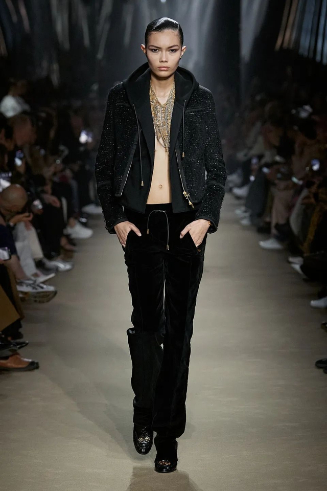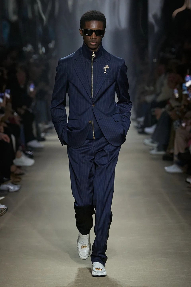 11/53 Palm Angels 2023秋冬系列尽显潮流风范,红黑的皮革夹克摩登时髦,领部设计融入立体皮草,增添野性与力量感,羽绒夹克融入机车元素,星星、字母、椰树花纹、丰富质感趣味十足,金色、宝蓝、暗粉色彩融入,满满复古街头范~