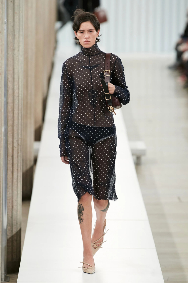 24/65 随着年龄的增长,女孩子的着装和举止往往会趋于优雅。本季,Miuccia Prada将年轻一代的生活方式中运用到时装之中,将富有感染力的青春情调融入了Miu Miu系列。大秀由女演员Mia Goth开场,Emma Corrin闭秀,你可以看到这个系列中有大量时髦知识分子出现,间中还有超酷的运动休闲女孩,活力满满,个性十足。