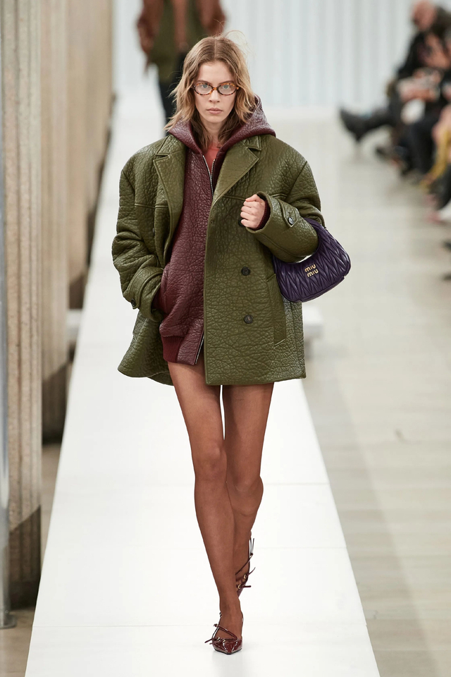 35/65 随着年龄的增长,女孩子的着装和举止往往会趋于优雅。本季,Miuccia Prada将年轻一代的生活方式中运用到时装之中,将富有感染力的青春情调融入了Miu Miu系列。大秀由女演员Mia Goth开场,Emma Corrin闭秀,你可以看到这个系列中有大量时髦知识分子出现,间中还有超酷的运动休闲女孩,活力满满,个性十足。