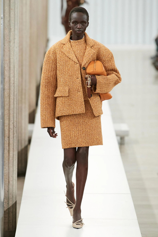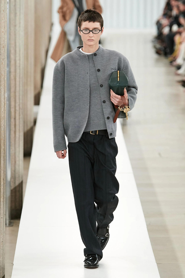 60/65 随着年龄的增长,女孩子的着装和举止往往会趋于优雅。本季,Miuccia Prada将年轻一代的生活方式中运用到时装之中,将富有感染力的青春情调融入了Miu Miu系列。大秀由女演员Mia Goth开场,Emma Corrin闭秀,你可以看到这个系列中有大量时髦知识分子出现,间中还有超酷的运动休闲女孩,活力满满,个性十足。