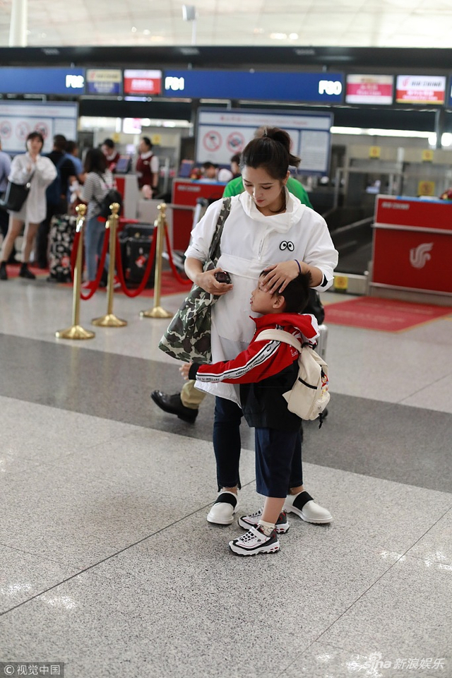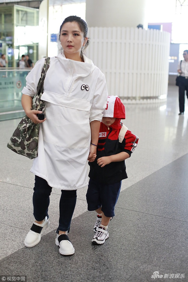 3/4 新浪娱乐讯 日前,何洁带着儿子七宝现身北京首都机场。何洁一身宽松白衣清爽亮相,儿子七宝脸上露出一道疤痕,他拉低帽檐狂躲镜头,一路上拉手妈妈,似撒娇求抱抱。视觉中国/图