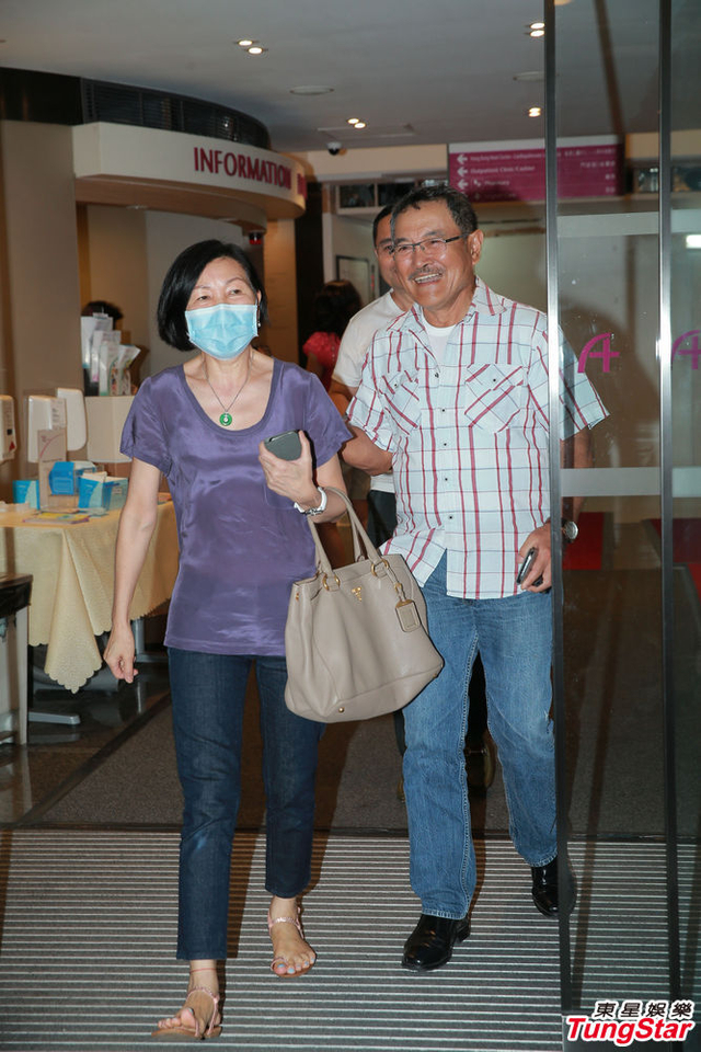23/31 新浪娱乐讯 杨幂1日剖腹为老公刘恺威诞下女儿小糯米,刘丹夫妇、杨幂父母及刘恺威妹妹2日到港安医院探望。在丹爷邀请下,杨爸爸与丹爷两夫妇于医院门前合照。