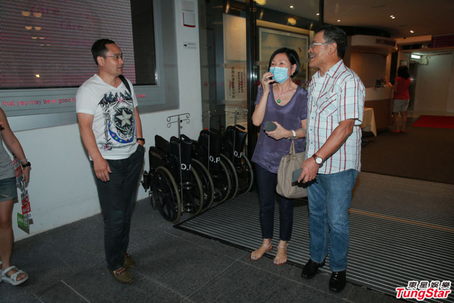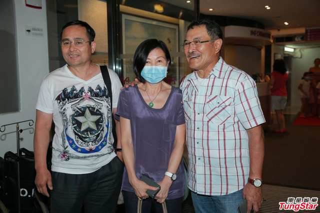 15/31 新浪娱乐讯 杨幂1日剖腹为老公刘恺威诞下女儿小糯米,刘丹夫妇、杨幂父母及刘恺威妹妹2日到港安医院探望。在丹爷邀请下,杨爸爸与丹爷两夫妇于医院门前合照。