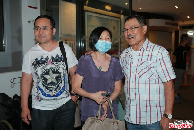 16/31 新浪娱乐讯 杨幂1日剖腹为老公刘恺威诞下女儿小糯米,刘丹夫妇、杨幂父母及刘恺威妹妹2日到港安医院探望。在丹爷邀请下,杨爸爸与丹爷两夫妇于医院门前合照。