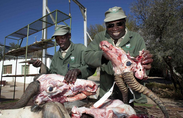 12/21 虽然制作费用高昂,制作过程更是血腥残忍,但有钱的外国猎人还是纷至沓来。在纳米比亚,动物标本剥制是合法的,而且非常受猎人欢迎。有导游称,如果有钱,想猎杀什么动物都行。而那些到此狩猎的猎人大多数为来自美国和德国等地的富有白人。