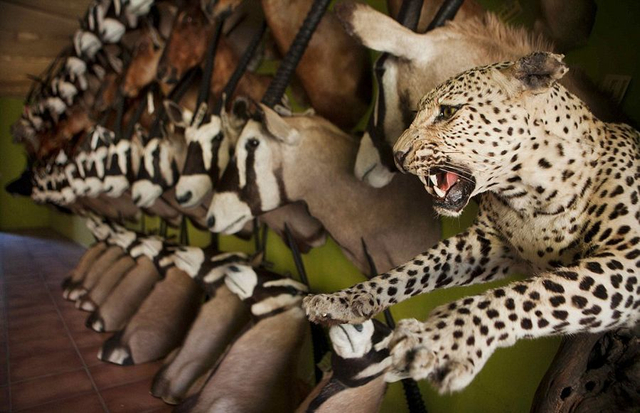 2/21 虽然制作费用高昂,制作过程更是血腥残忍,但有钱的外国猎人还是纷至沓来。在纳米比亚,动物标本剥制是合法的,而且非常受猎人欢迎。有导游称,如果有钱,想猎杀什么动物都行。而那些到此狩猎的猎人大多数为来自美国和德国等地的富有白人。