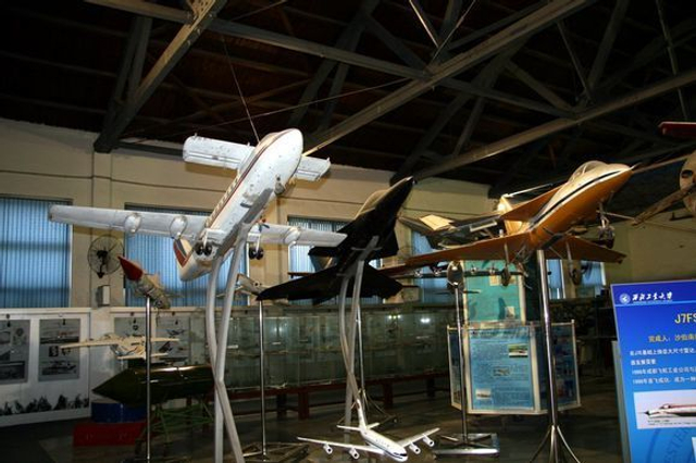 11/15 西北工业大学航空馆内的“抬式布局三剑客”,从左至右依次为“701”抬式运输机方案“延安”号改型模型、“751”抬式战斗机模型、ZM-01抬式战斗机外形试验模型。