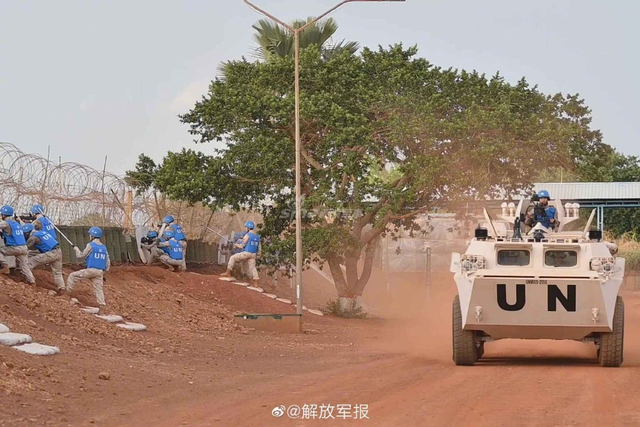 4/5 近日,针对周边复杂严峻的安全形势,为有效应对各种突发情况,我第13批赴南苏丹(瓦乌)维和工兵分队展开全要素应急防卫演练,全面提升官兵战备水平和应急处突能力。此次全要素应急防卫演练,有效提升了官兵安全防范意识和部队战备水平,确保在周边地区安全形势动荡变化的情况下做到常备不懈,有效提升营区防卫能力。(解放军报)