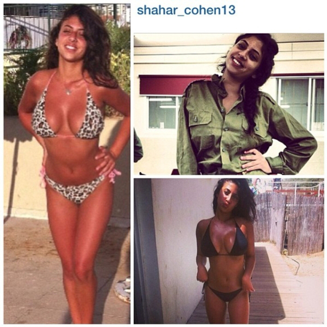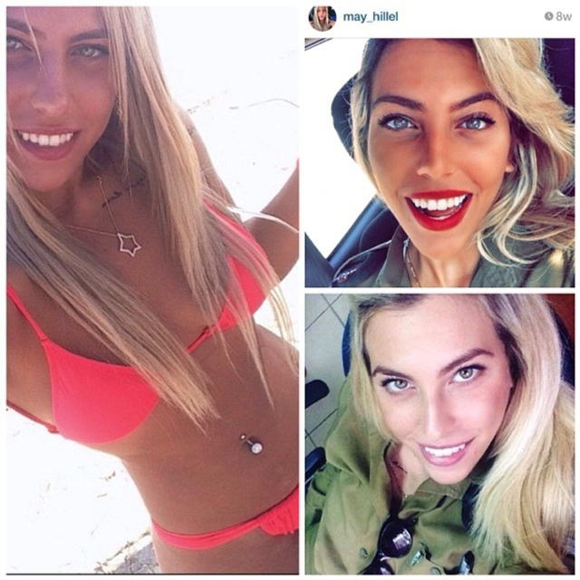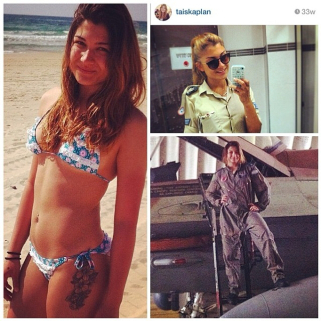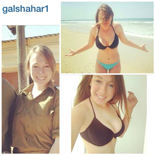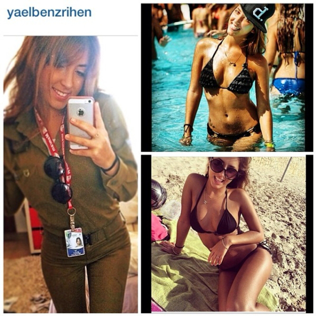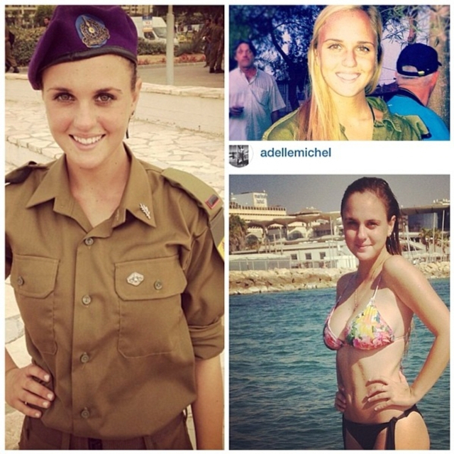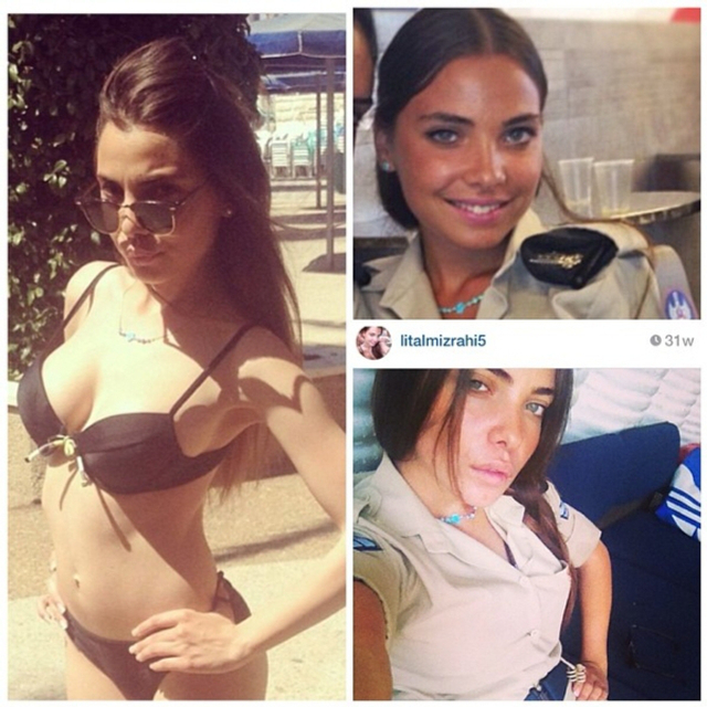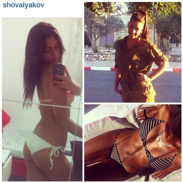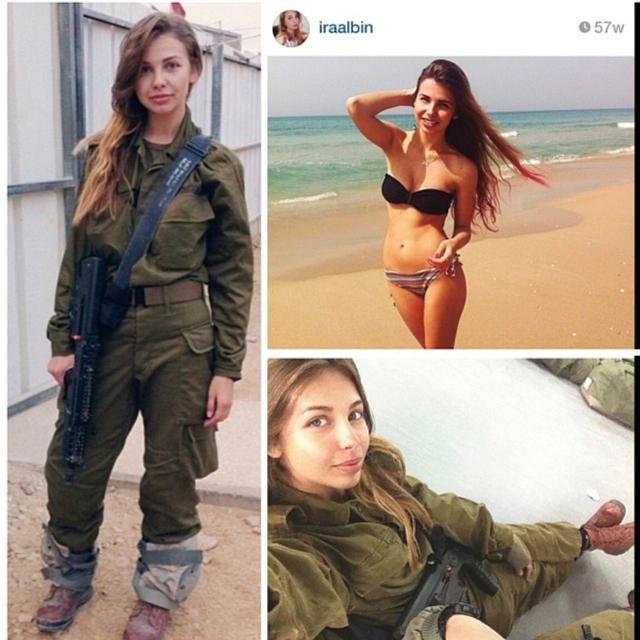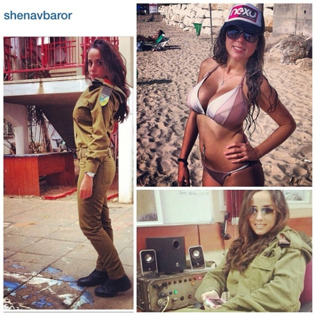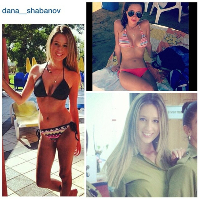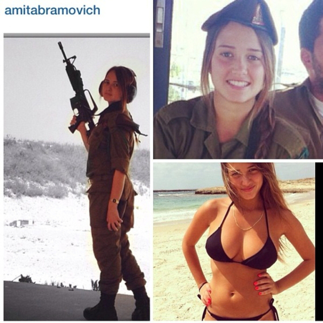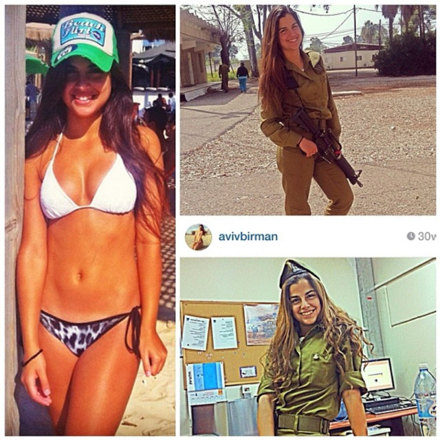 8/31 以色列实行全民制兵役法不管男女都要服兵役,这使得美女进入军队的比率相当高。在以色列街头也经常能看到挎枪逛街的漂亮姑娘们。当然,她们穿比基尼的形象更诱人!