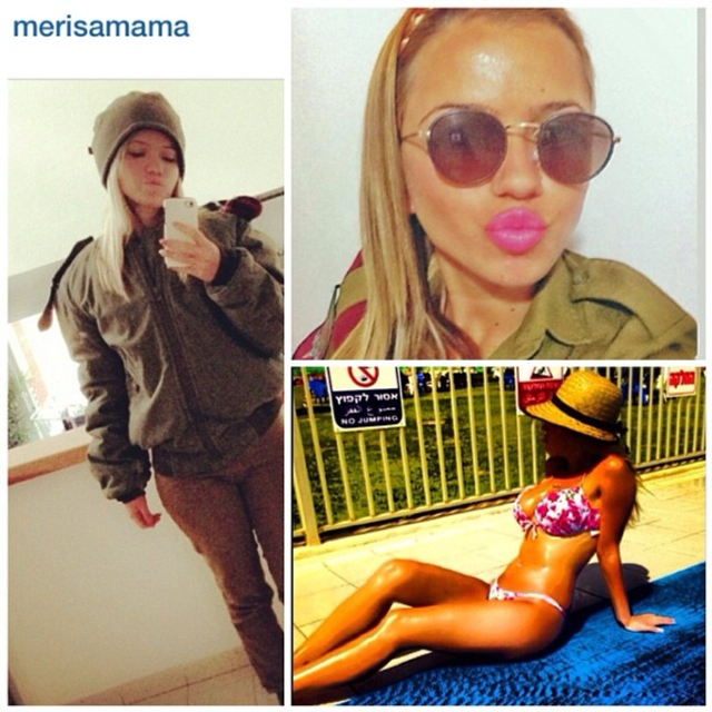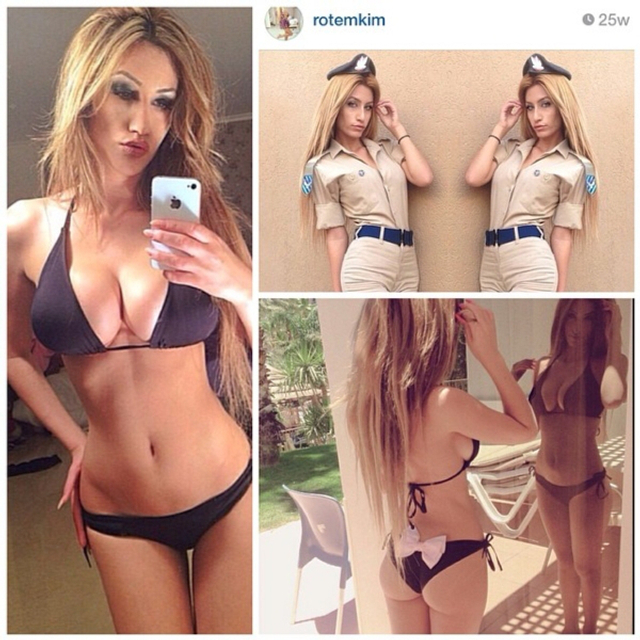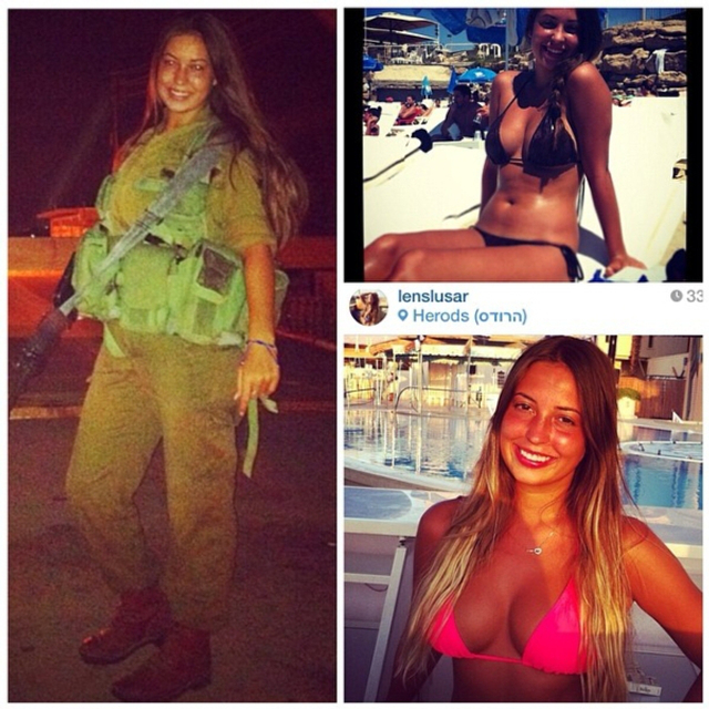 10/31 以色列实行全民制兵役法不管男女都要服兵役,这使得美女进入军队的比率相当高。在以色列街头也经常能看到挎枪逛街的漂亮姑娘们。当然,她们穿比基尼的形象更诱人!