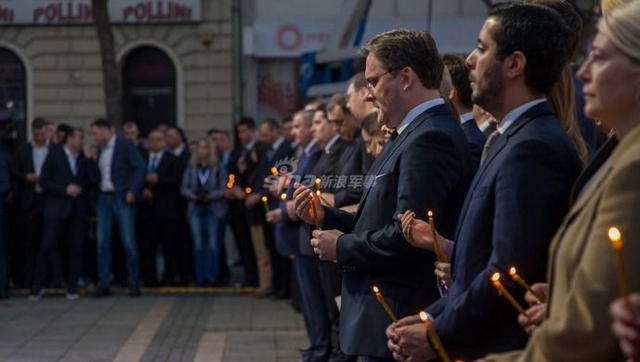 10/10 3月24日,在塞尔维亚北部城市松博尔,人们参加悼念北约轰炸南联盟遇难者仪式。新华社记者石中玉摄